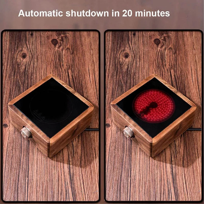 Petite station chauffante électrique en bois laqué de haute qualité.