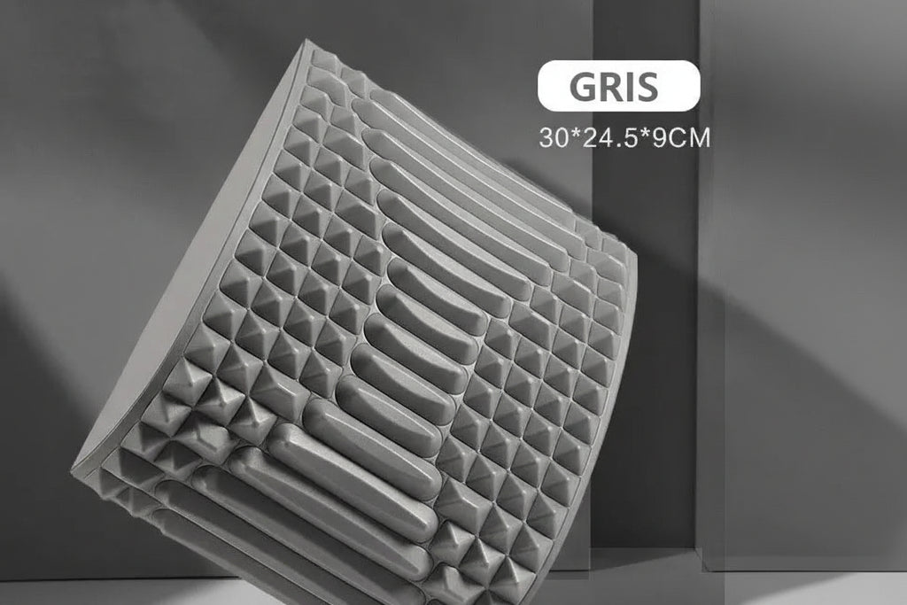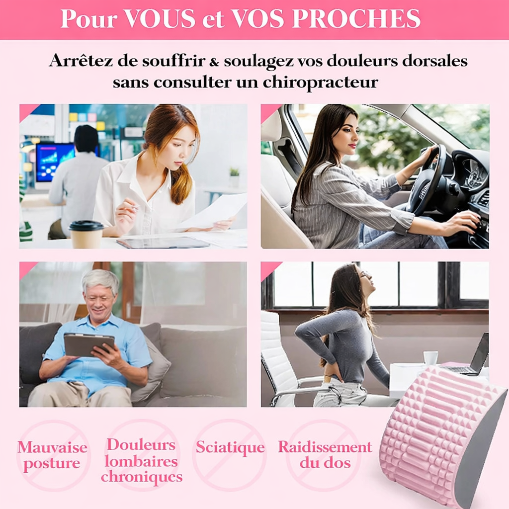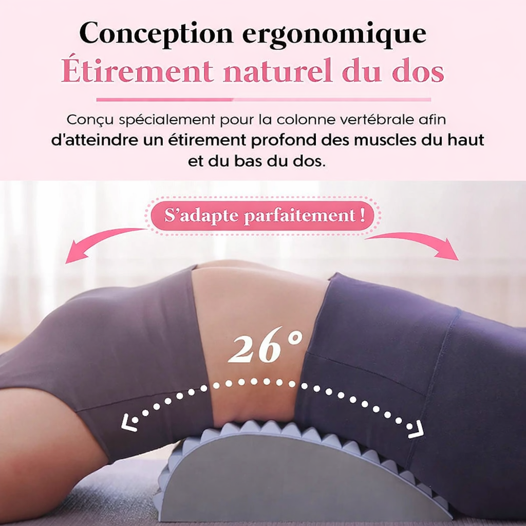 Un Appareil d'étirement pour dos à la fois masseur lombaire et civière chiropratique.