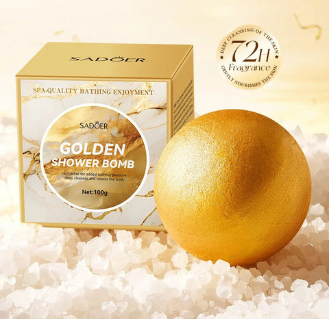 Cette bombe de bain vient parfumer et décorer l’eau de votre bain mais aussi de votre corps de petite touche d'or.