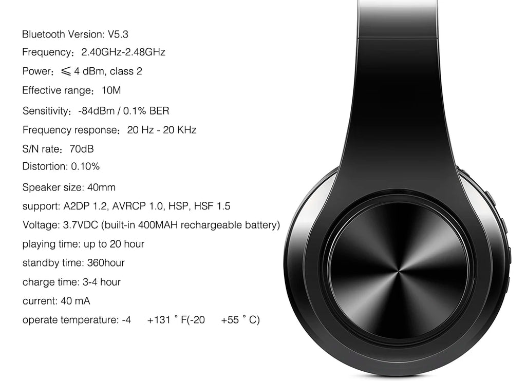 | Contenu | 1X Casque Bluetooth + 1 X Manuel d'utilisation + 1 X Prise de charge USB C. |